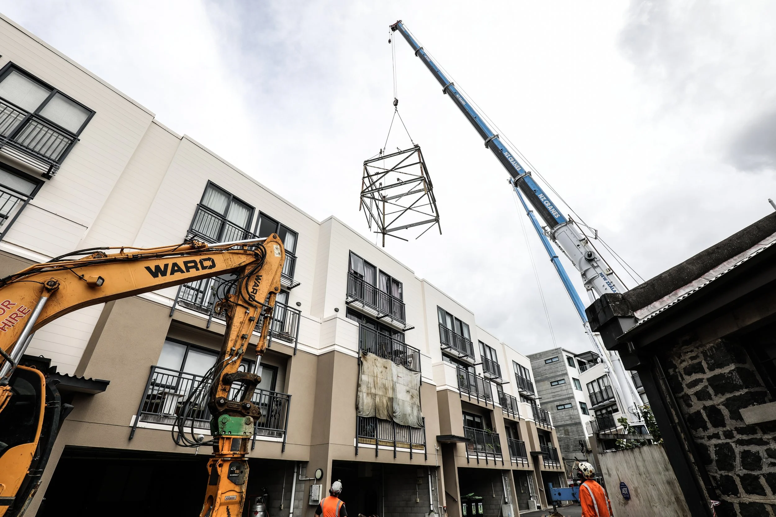 The 107 year old Mt Eden Shot Tower was deemed to be dangerously unstable during Cyclone Gabrielle in 2023. Resulting in the evacuation of 50 nearby families from their homes and Ward Demolition was mobilised under emergency works. Our team had limited space and time to cut and crane sections of the tower down to the ground for dismantling and load out. We worked long hours through the weekend to get families home as quickly as we could without adding risk to the project.