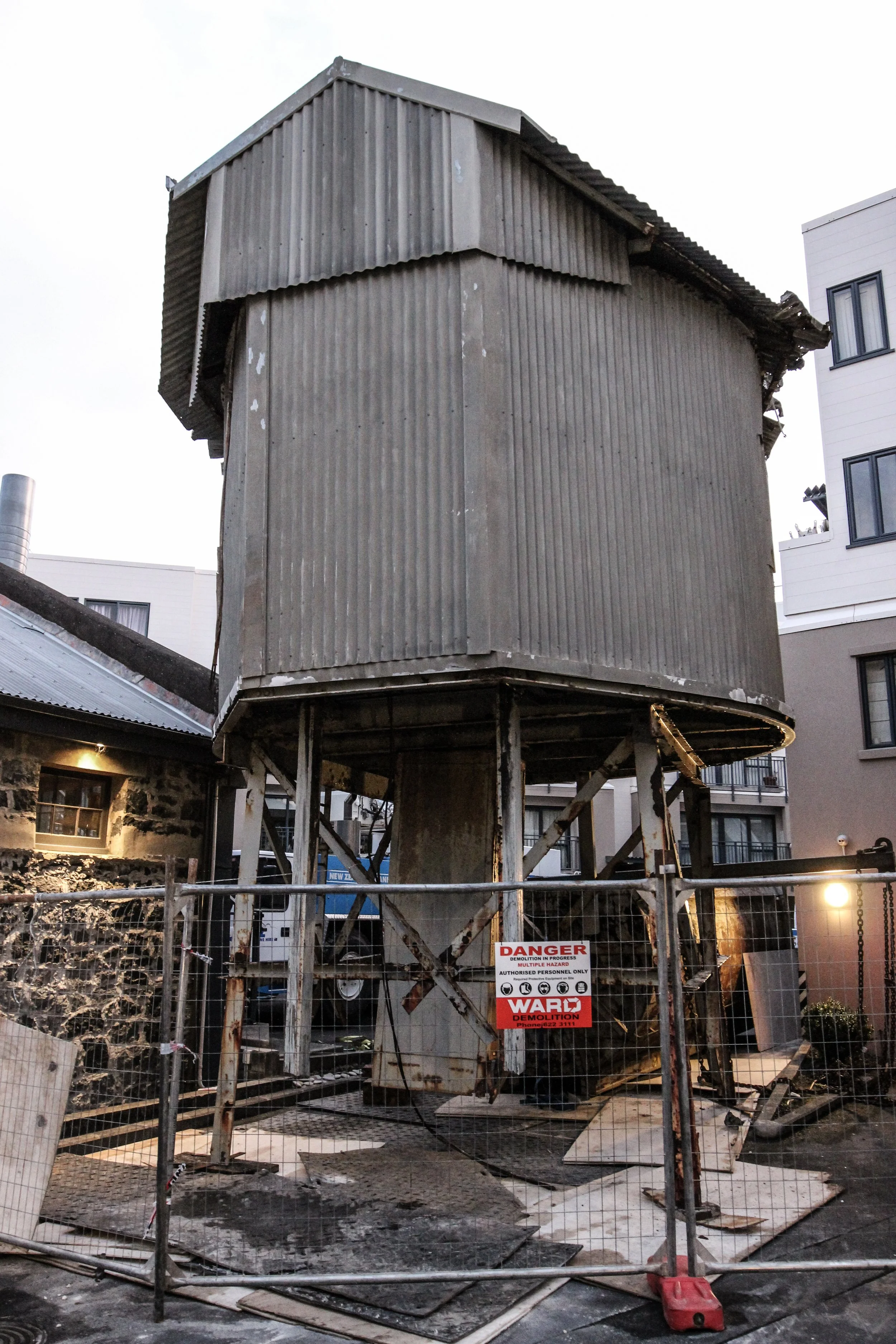 The tower was built in 1916 as a result of fears of invasion from Russia, the government pushed for increased ammunition production. By 1906 the structure was capable of creating all three types of .303 ammunition used by the New Zealand Armed forces. It was New Zealands largest supplier of small-arms ammunition through both world wars. The ammunition was made by melting lead and dropping it from the height of the tower into water below. When we stripped weight from the top shed we found many bricks of lead contributing to the weight in excess of our cranes lifting capacity.