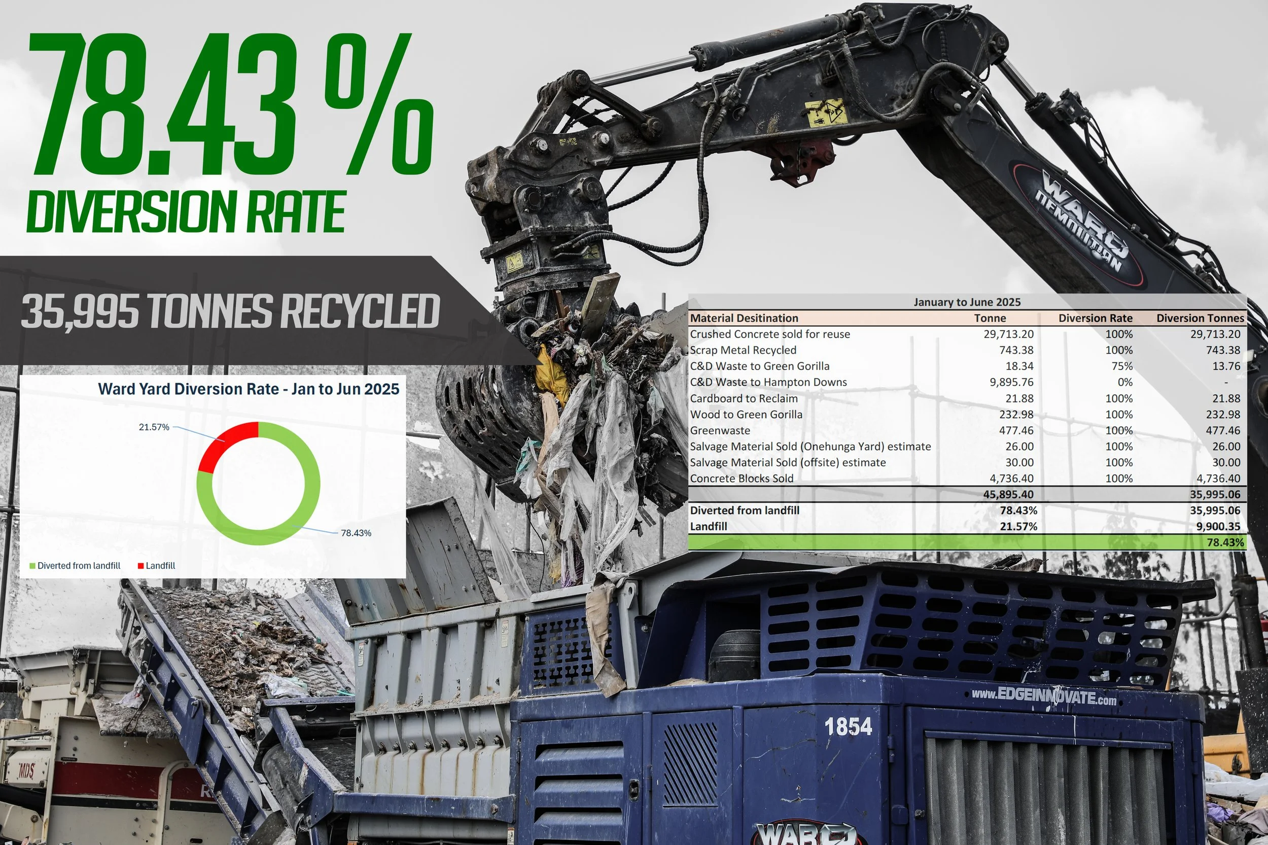 In 6 months Wards Onehunga Yard recycled 35,995 tonnes of materials.
