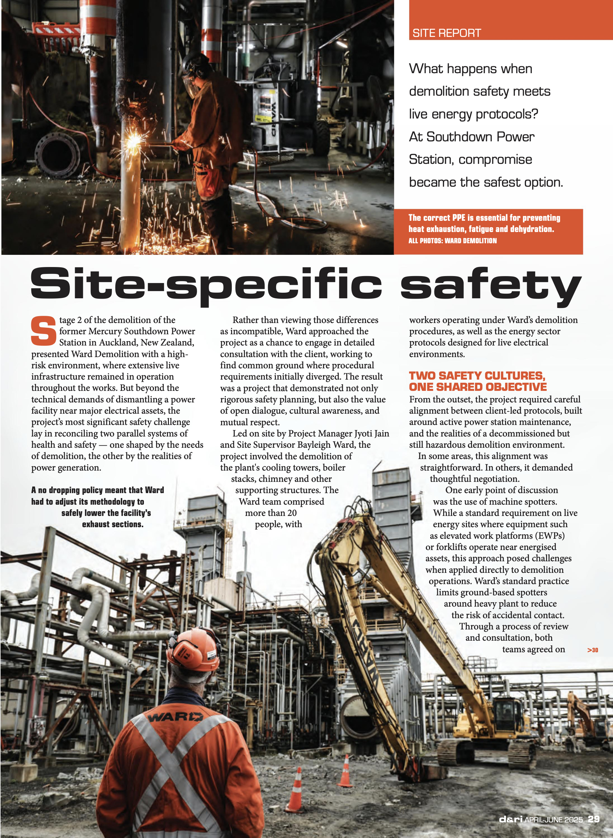 Ward Demolition was shortlisted in the World Demolition Awards in 2024 in the Health and Safety Category. Which is a huge achievement up against some big countries with huge companies. Although we didn’t win the project was featured in the Demolition and Recycling International Magazine. This was an incredible honour and the article captured the nature of our Health and Safety efforts perfectly. See article HERE. Preview below: