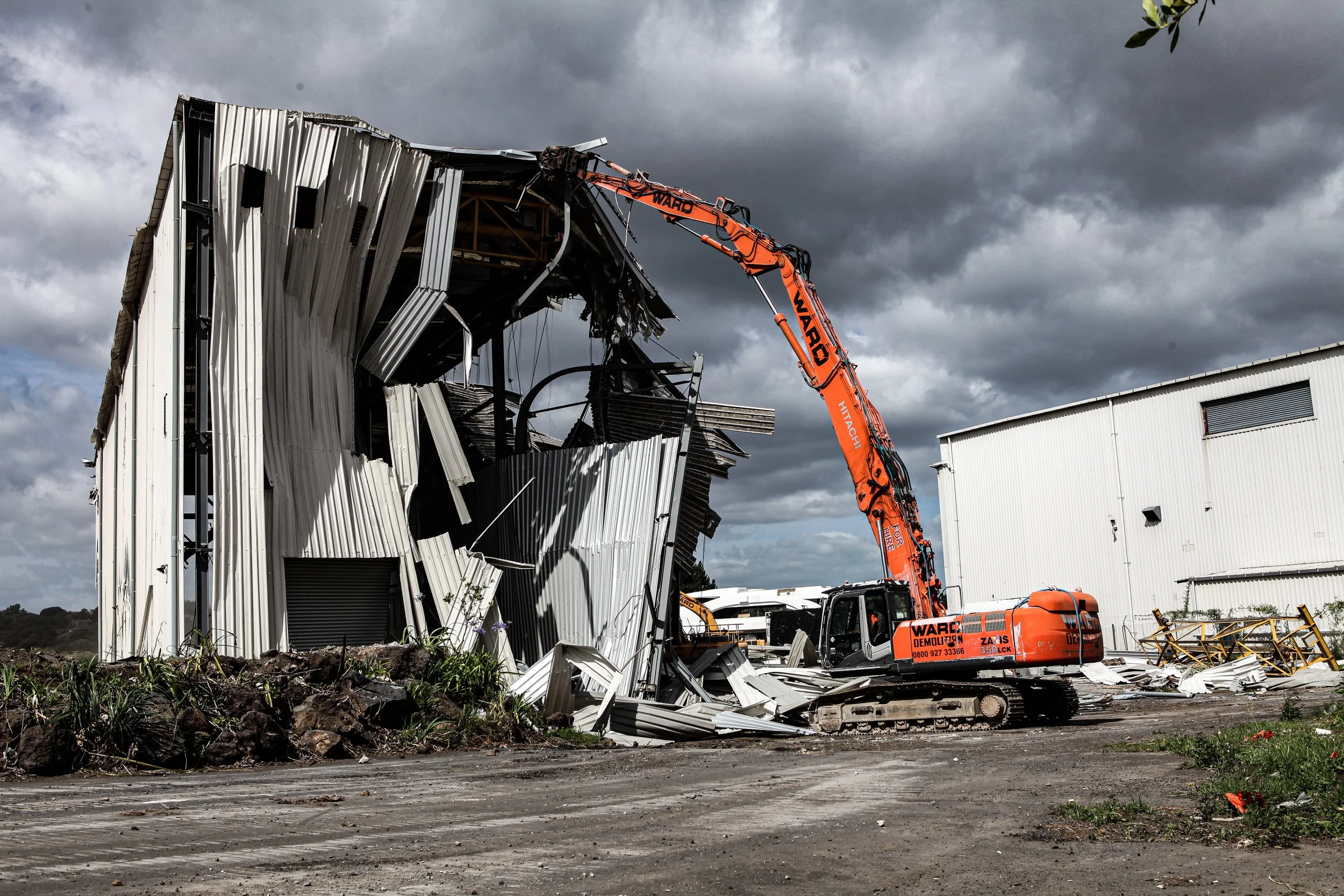 Breaking things. The two other super yachts met their demise in the form of our Team of 13 and our large diggers. The big boats were in bad shape and the boys put them out of their misery as well as the 4 large buildings surrounding them. Being mostly steel sheds the recycle rate for this job was right up where we like it with 100% of this steel recycled.