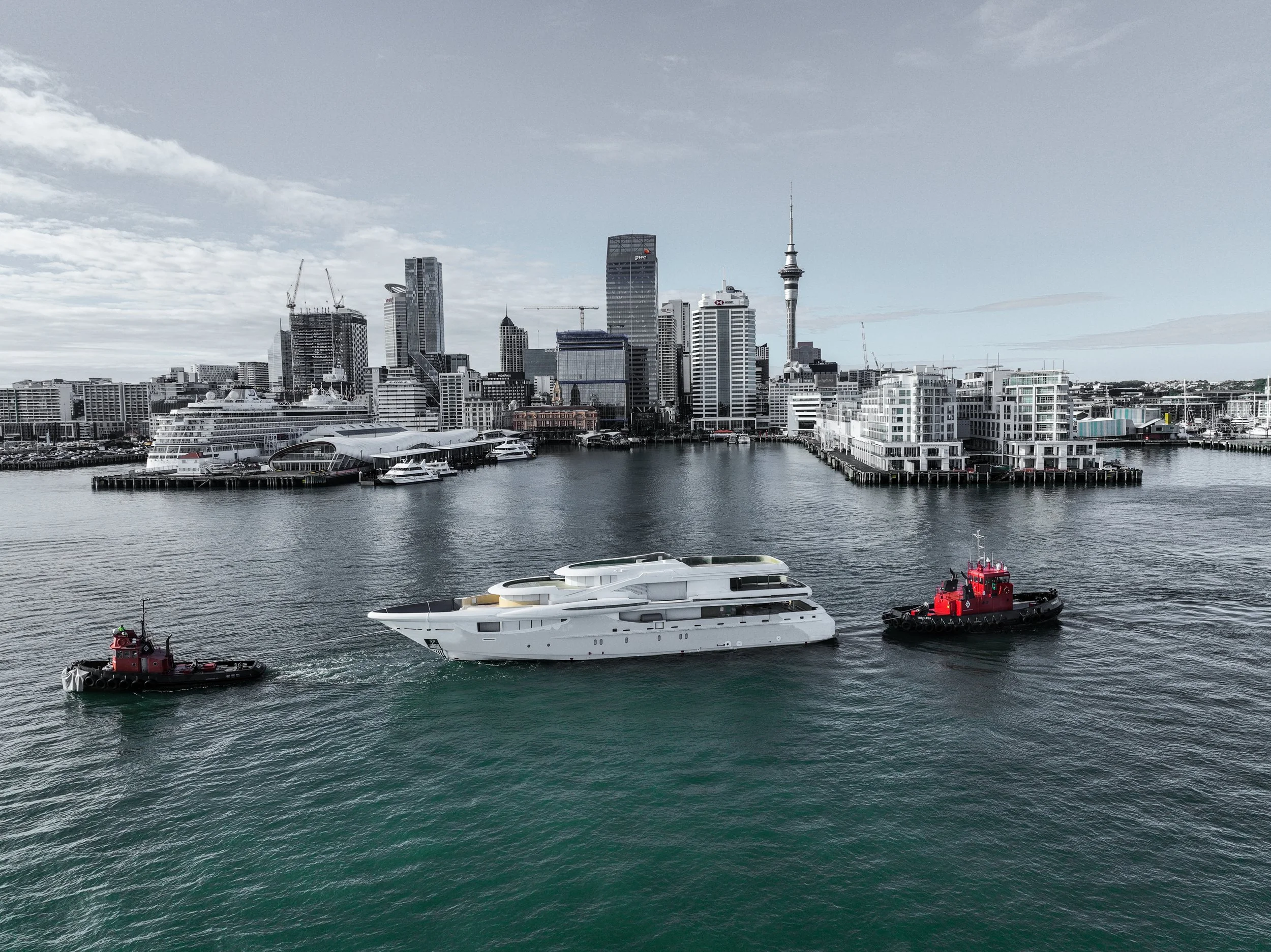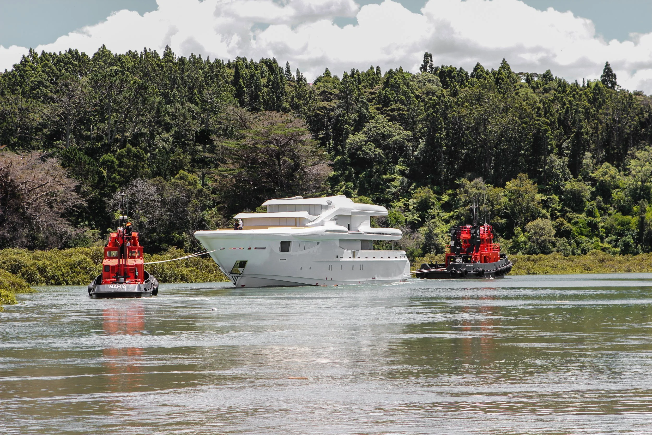 Unfortunately, the reality of finishing the project in New Zealand within budget has become highly implausible. As the Yacht building industry in NZ is catastrophically depleted. The best solution was to launch the unfinished Yacht and barge it across the Tasman Sea to Brisbane, Australia. The relocation provided more manpower and easier accessibility to parts and materials.