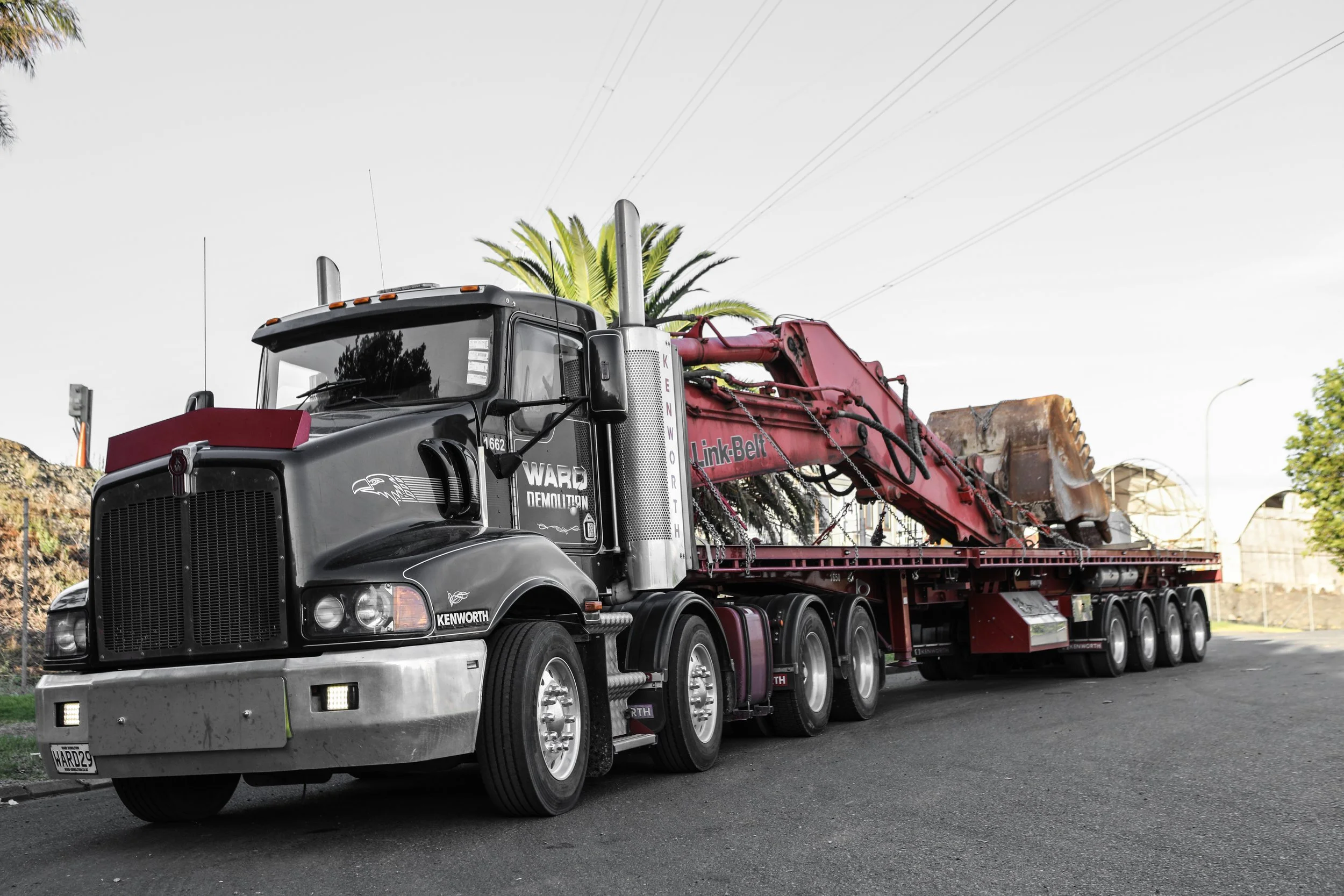 MR WARD is the pride of our fleet. The T909 Kenworth was purchased and modified as a tribute truck to the late Murray Ward, Peter’s father and a larger than life presence in our Te Kauwhata Quarry. The black and chrome beauty hauls machines up to 75 tonne across New Zealand. Watch the video below for more info: