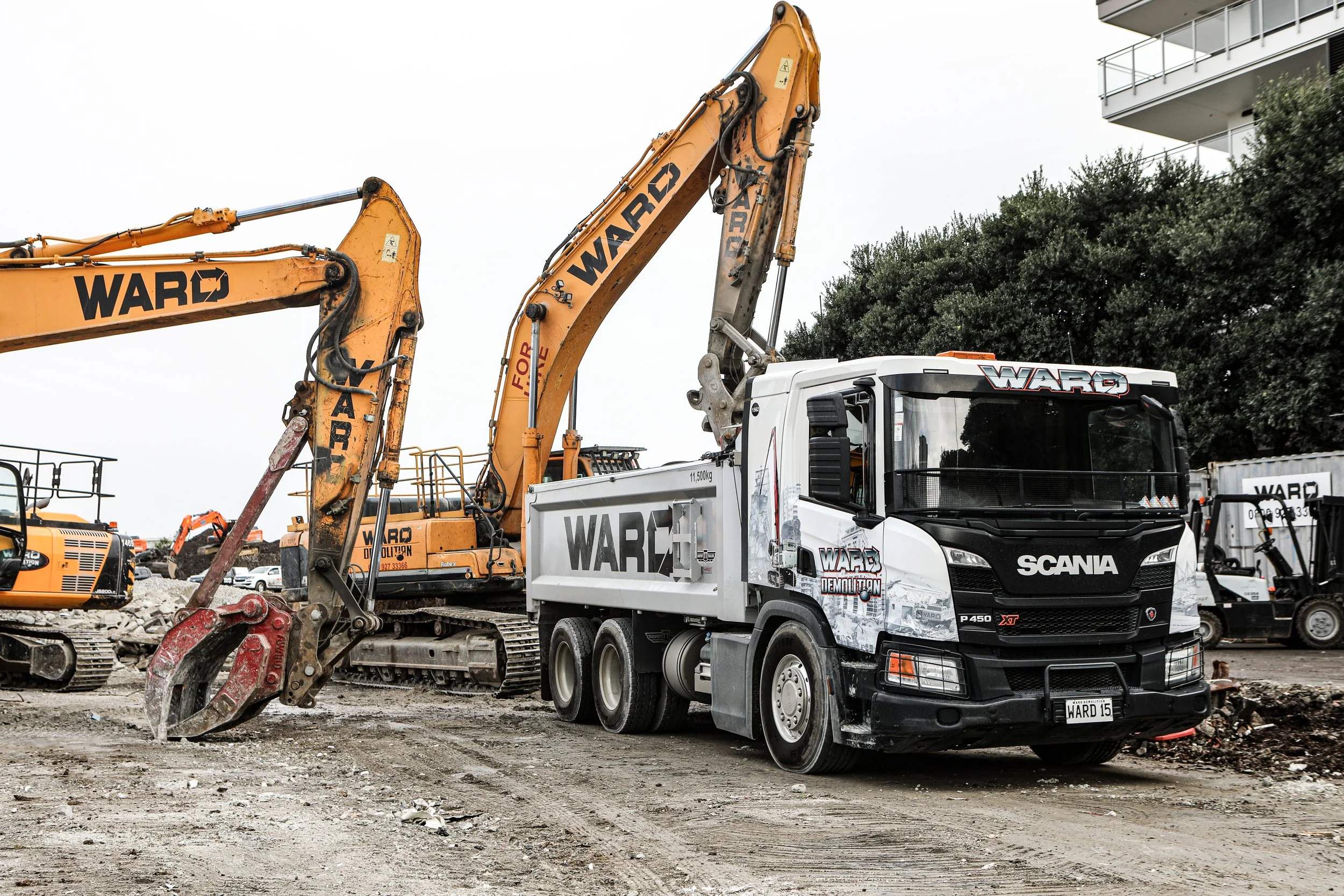 Ward Demolition has our own in house transport company, saving time and money on demolition projects. Having such a large fleet and our very own concrete and rubbish recycling yard, means we can move mass materials from site, meeting even the tightest deadlines. All of our 34 Trucks and 19 drivers are also available for hire. Get in touch for pricing: